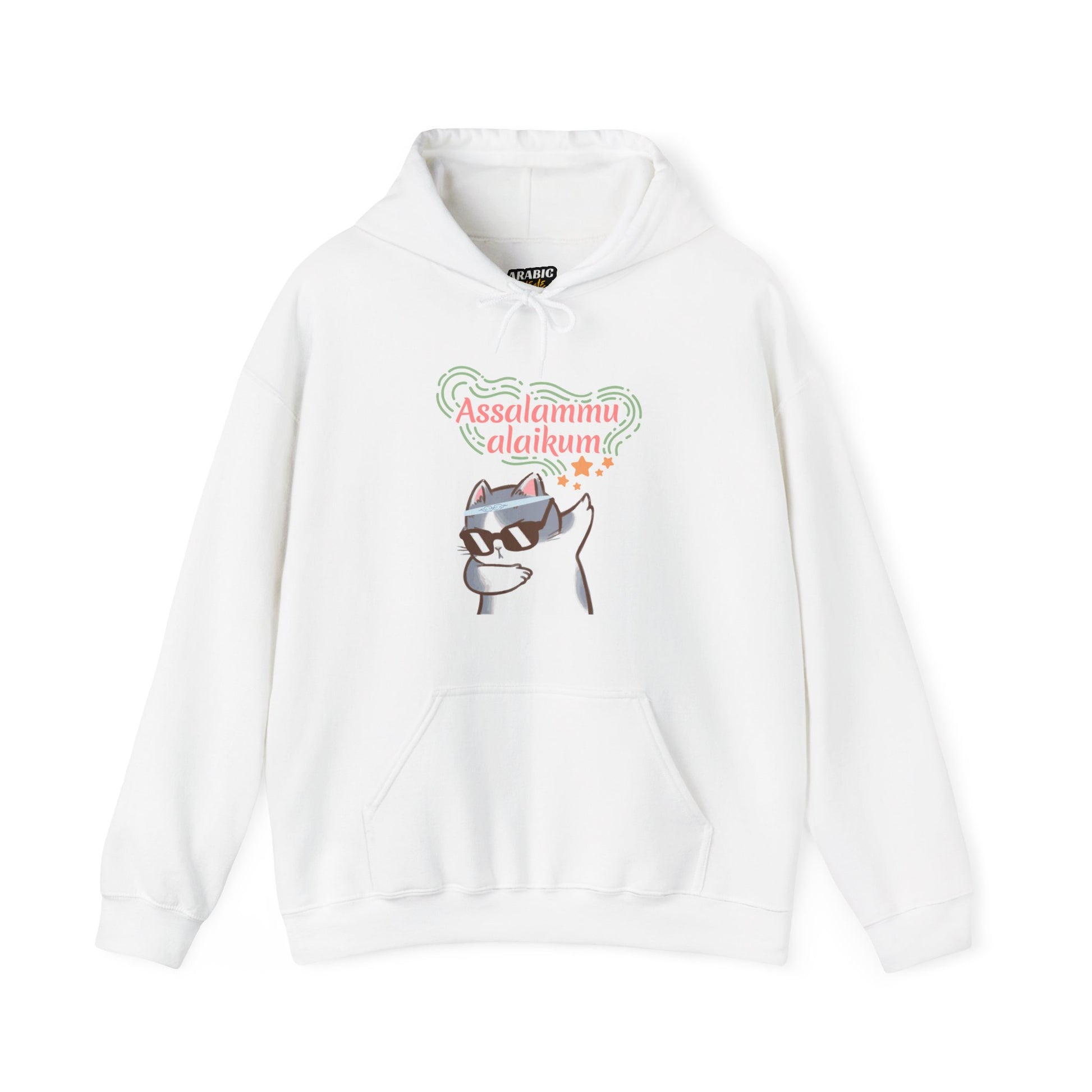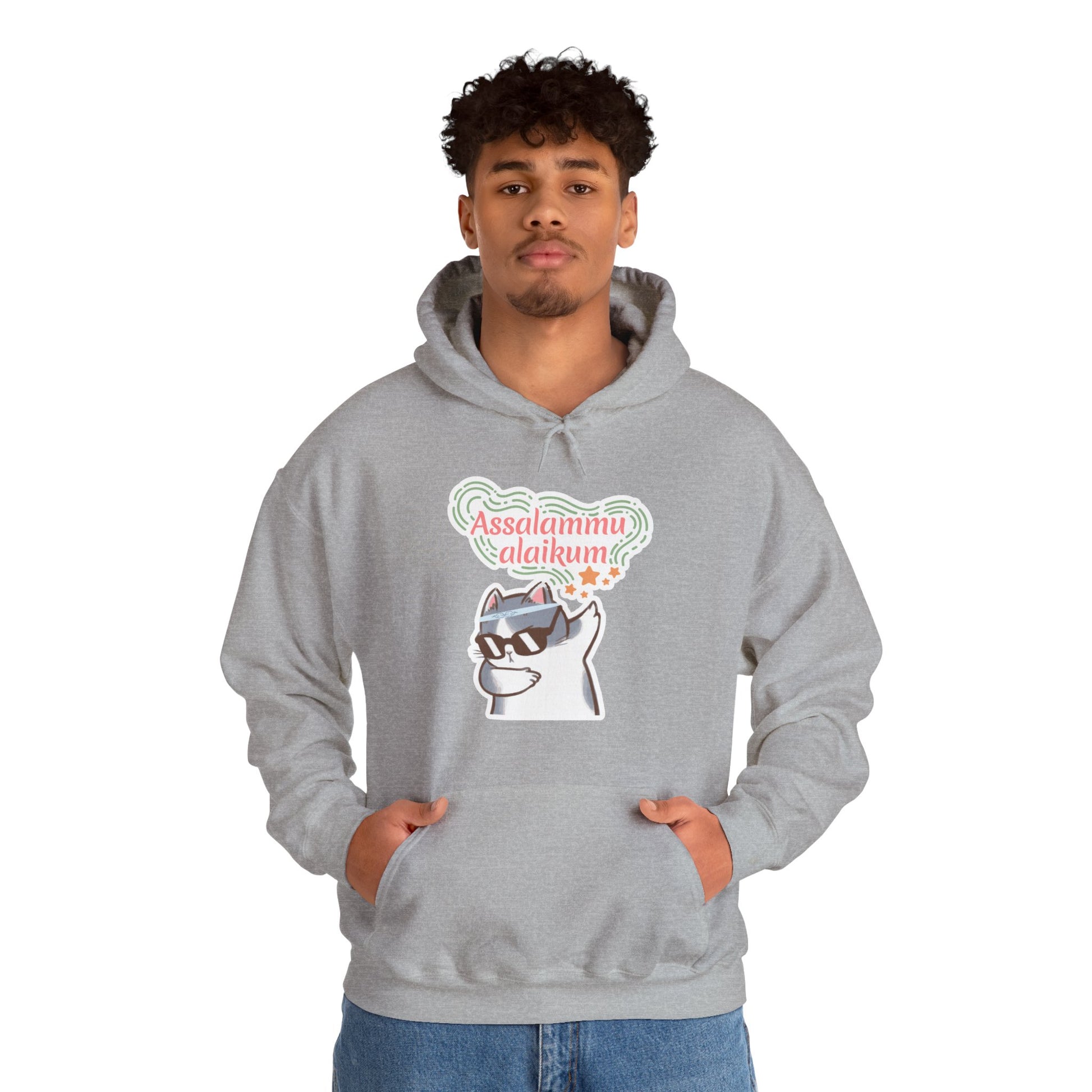 Assalamualaikum Typographic Hoodie - Cat Sunglasses Graphic Cozy Soft Cotton Unisex Hoodie