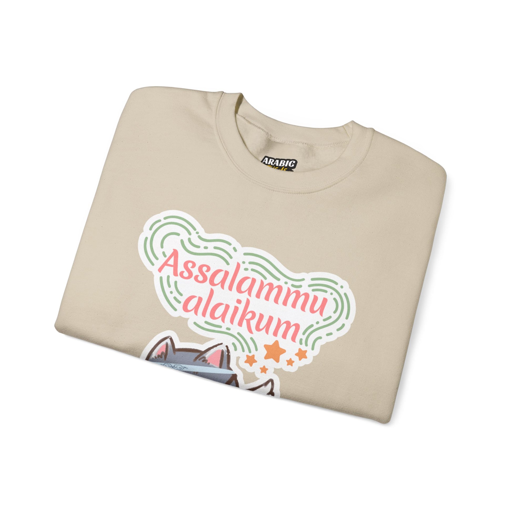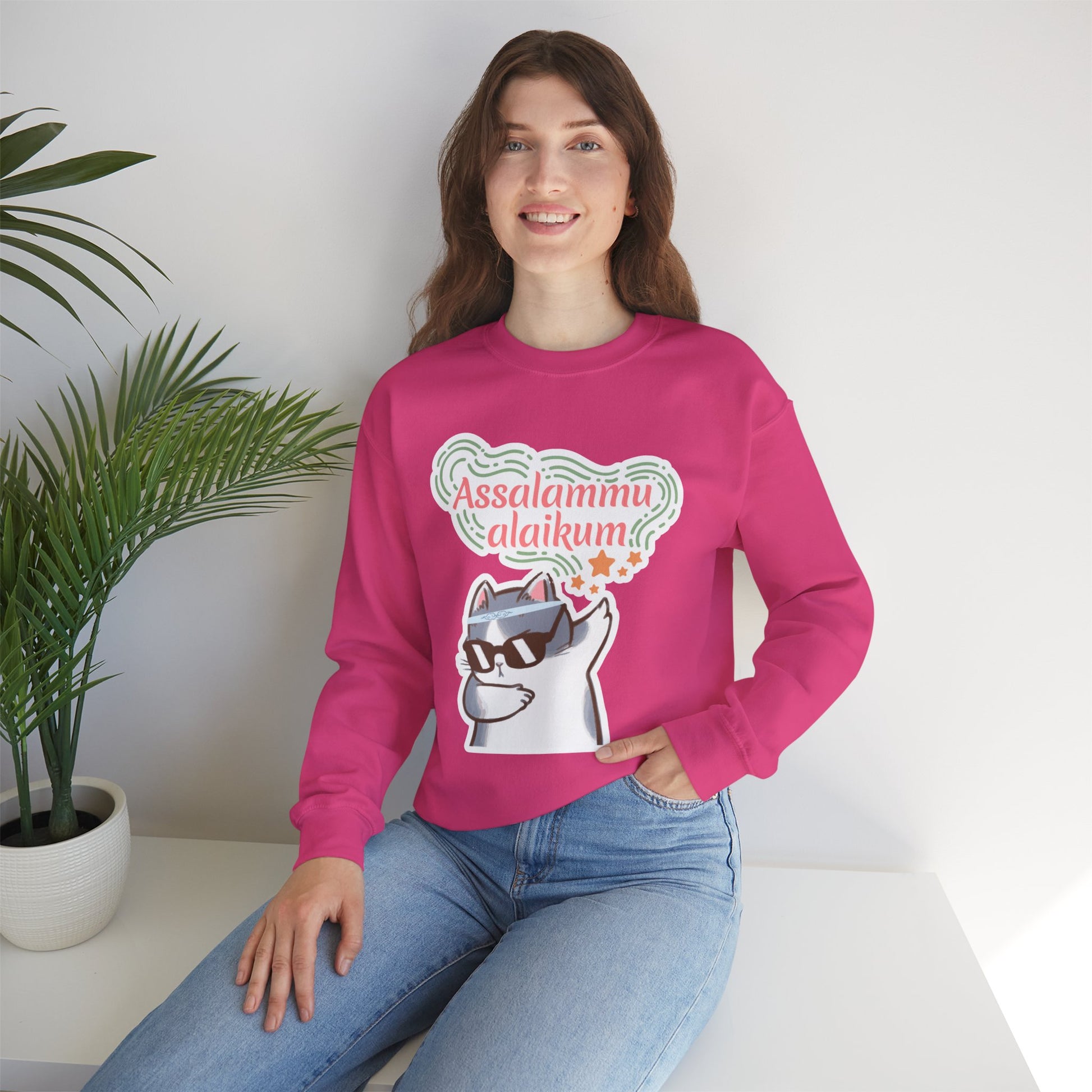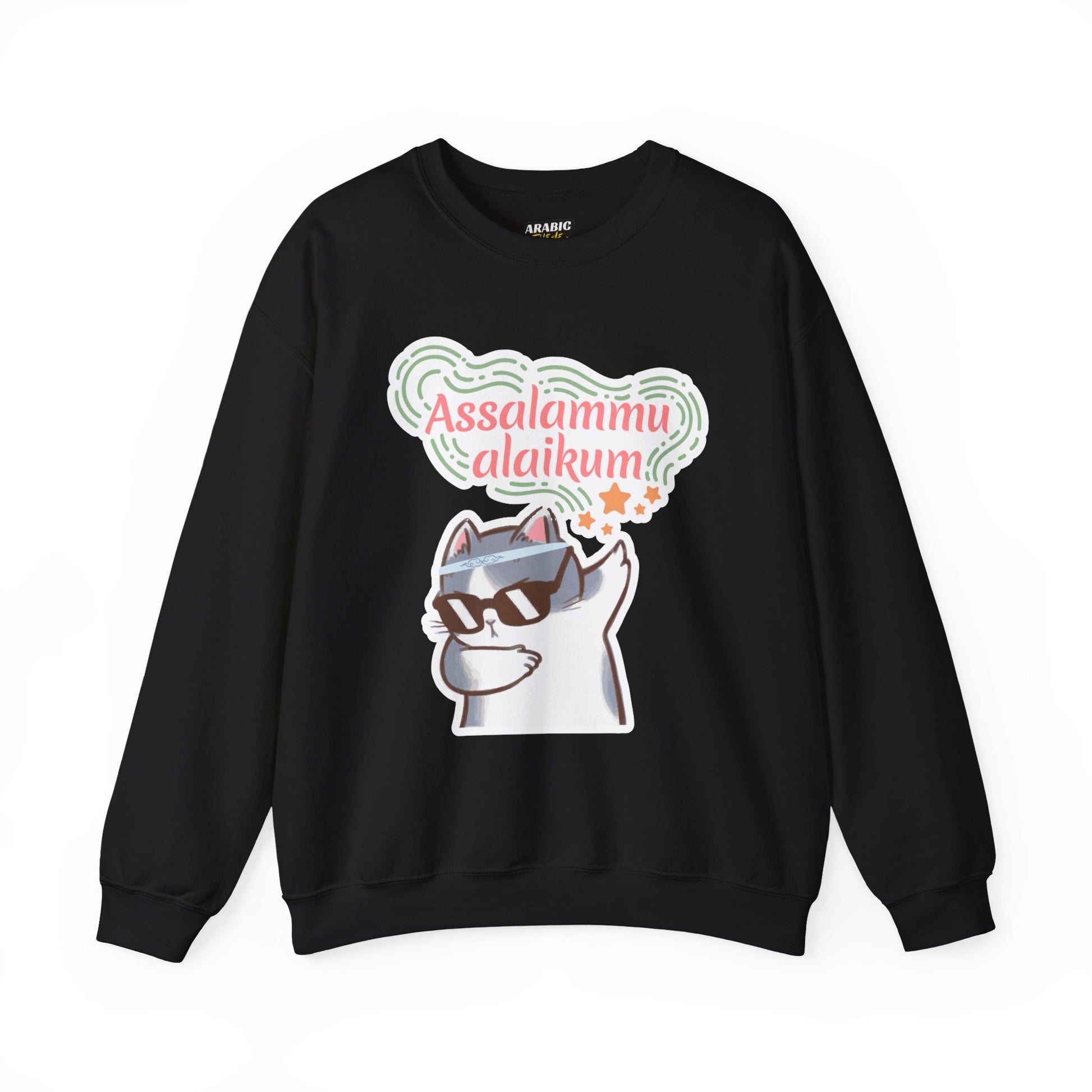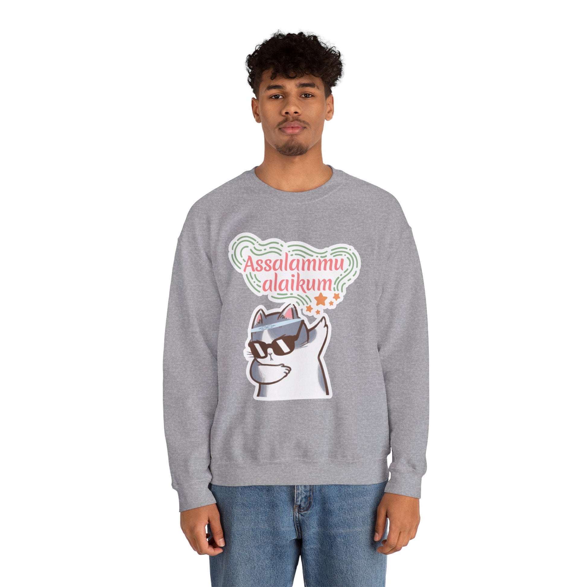 Assalamualaikum Typographic Sweatshirt - Cat Sunglasses Graphic Cozy Soft Cotton Unisex Sweatshirt