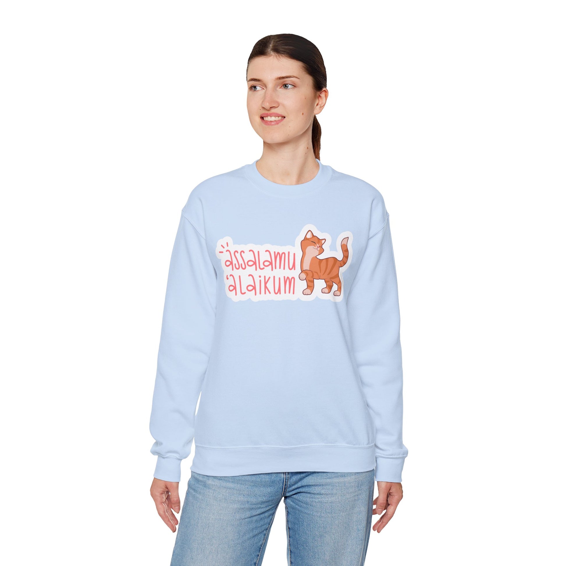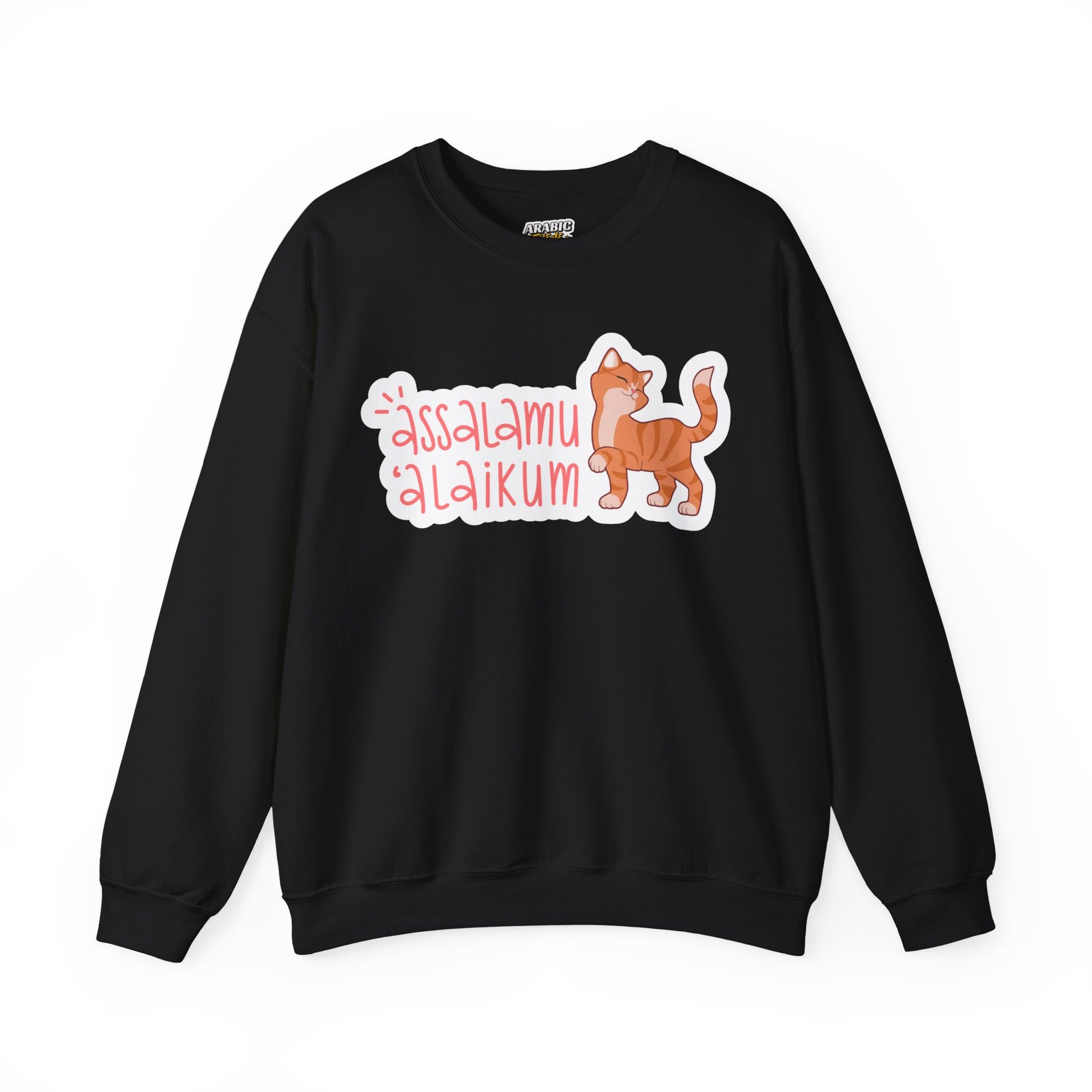 Assalamualaikum Typographic Sweatshirt - Cute Cat Smug Graphic Cozy Soft Cotton Unisex Sweatshirt