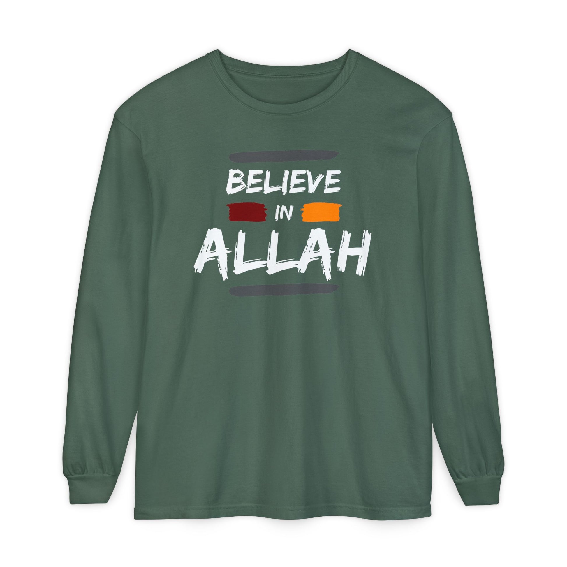 Believe in Allah Typographic Long Sleeve Tee T-Shirt - Cozy Soft Cotton Unisex Statement Long Sleeve Tee