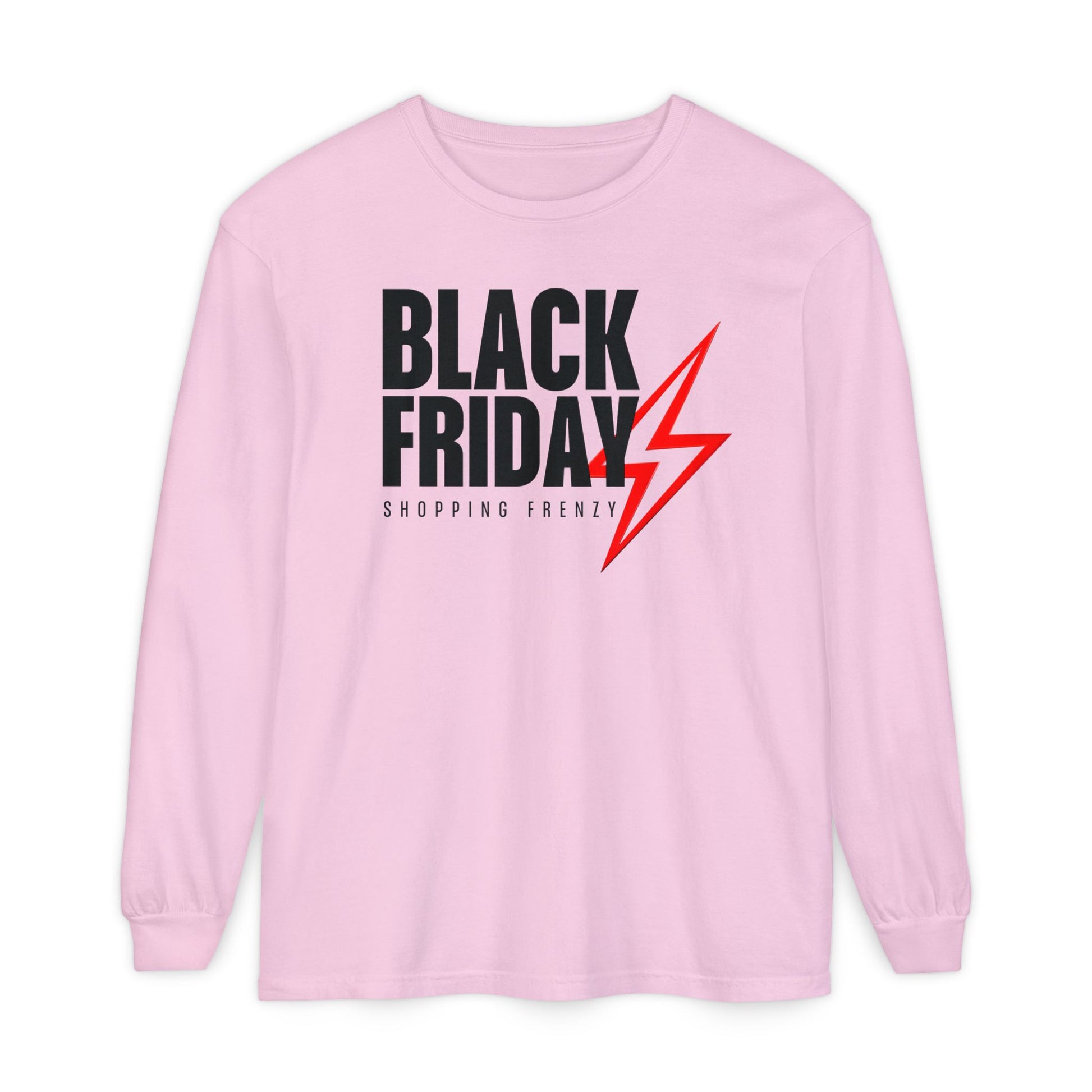 Show your Black Friday Shopping Frenzy Long Sleeve - Lightning Graphic Tee! Featuring a Lightning Graphic Tee with powerful typography, this design perfectly captures the intense excitement of Black Friday shopping. A modern, minimalist take on Black Friday apparel that makes a strong statement.