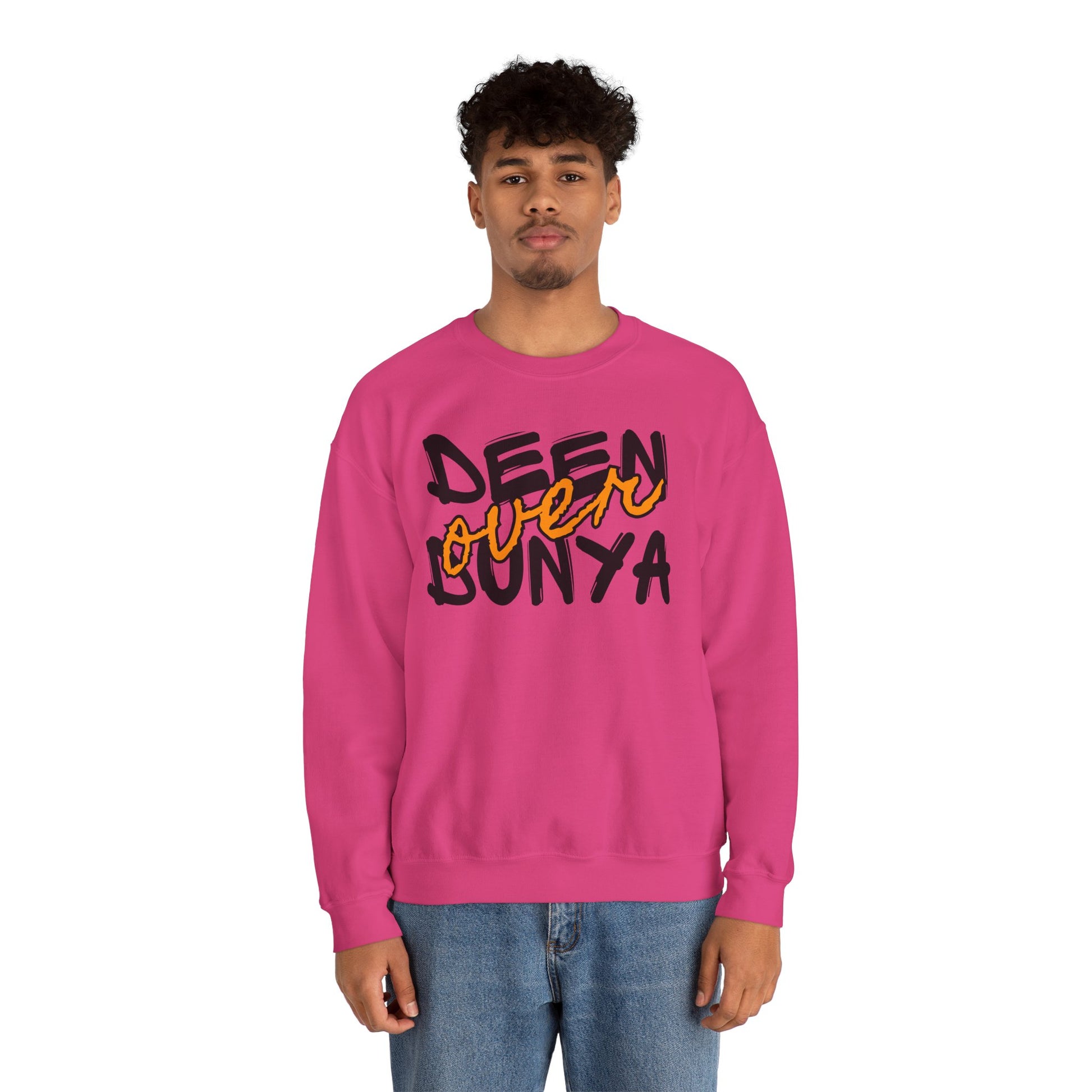 Deen Over Dunya Typographic Sweatshirt - Cozy Soft Cotton Unisex Statement Sweatshirt