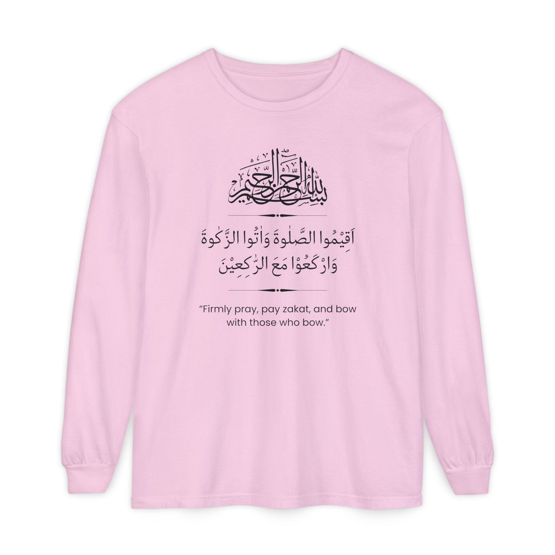 Firmly Pray, Pay zakat, and Bow with those who bow Long-Sleeve T-Shirt - Arabic Calligraphy Islamic Unisex Long-Sleeve Tee