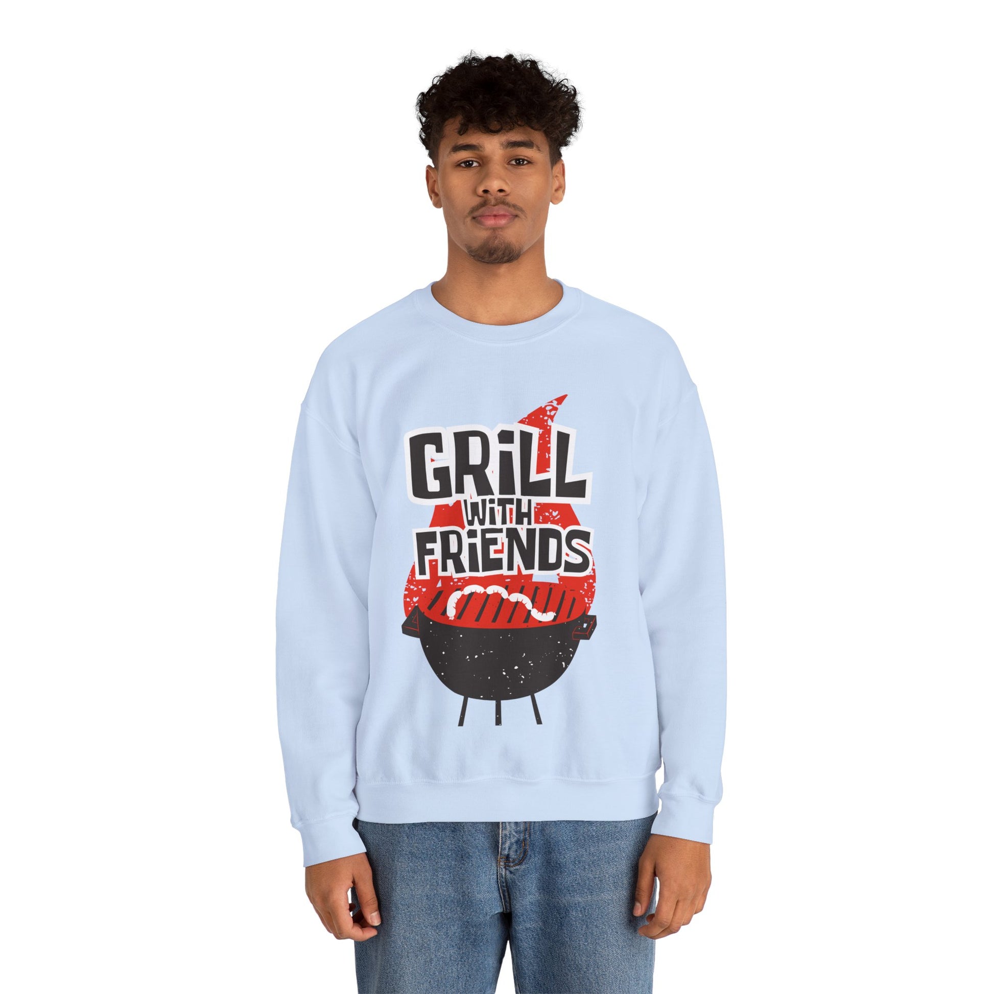Grill with Friends Typographic Sweatshirt - Cozy Soft Cotton Unisex Sausage Graphic Sweatshirt