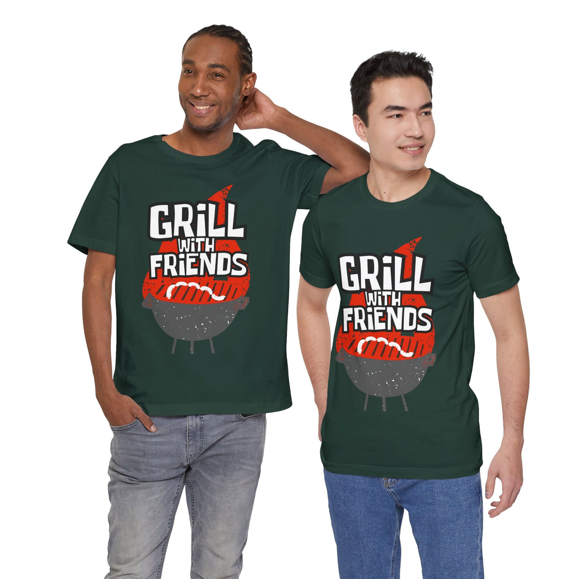 Get our premium Grill with Friends Typographic Tee T-Shirt - Cozy Soft Cotton Unisex Sausage Graphic Tee T-Shirt! A light, breathable tee that celebrates backyard gatherings and slow-smoke evenings. Soft Airlume combed cotton keeps you cool while you man the grill or mingle with neighbors. The bold, hand-drawn graphic — a kettle grill with playful flame lettering reading “Grill with Friends” — feels warm and familiar, like the first laugh that starts a long night of good food. Wear it to the cookout, the block party, or while prepping marinades; it layers easily under an overshirt or stands alone with a faded cap. Thoughtful construction (side seams, shoulder tape and a ribbed collar) means it keeps its shape through repeated wears and washes, while the tear-away label prevents irritation. Sourced and made with responsible practices, this tee blends comfort with character for anyone who lives for smoky aromas and shared plates.