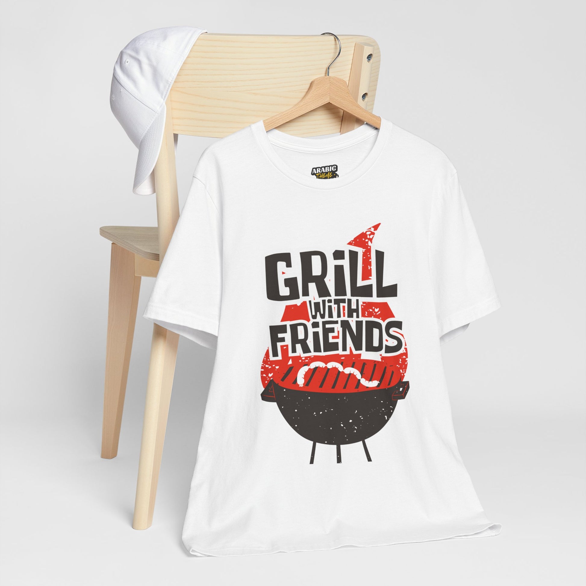 Grill with Friends Typographic Tee T-Shirt - Cozy Soft Cotton Unisex Sausage Graphic Tee T-Shirt