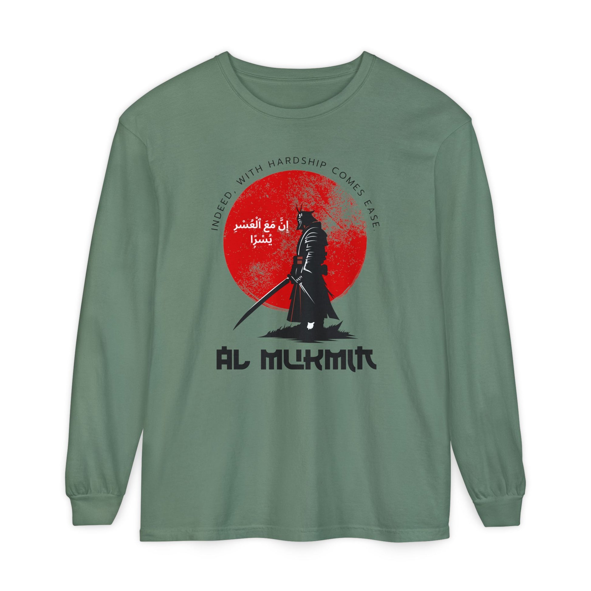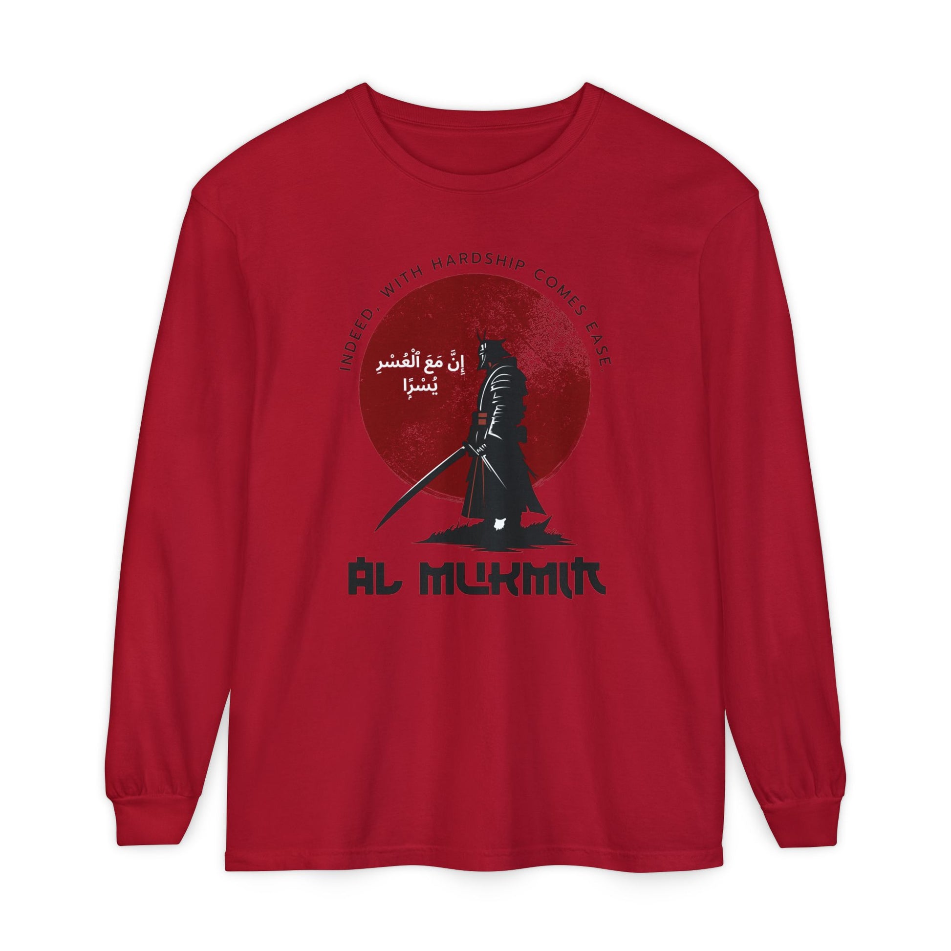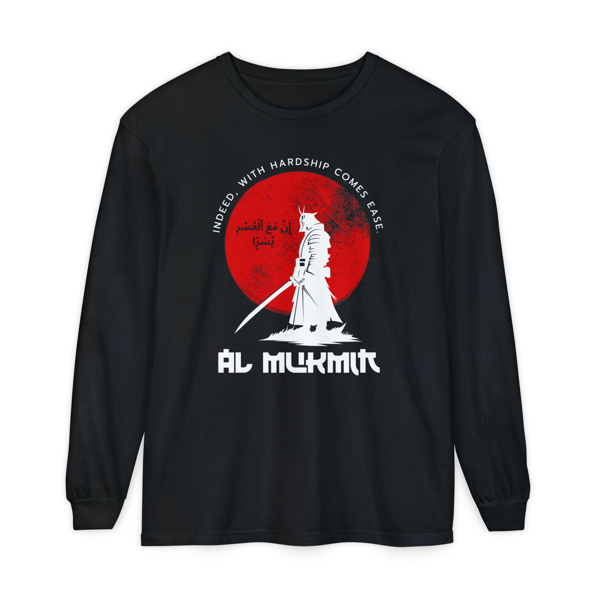 Indeed with Hardship Comes Ease Typographic Long Sleeve Tee T-Shirt - Cozy Soft Cotton Unisex Samurai Statement Long Sleeve Tee