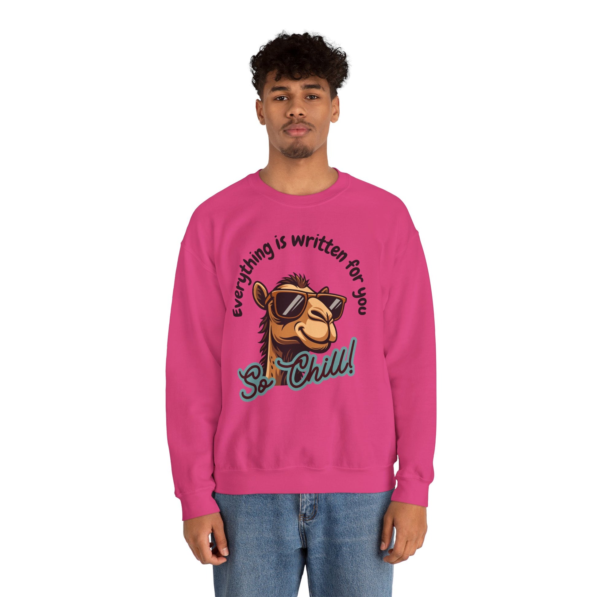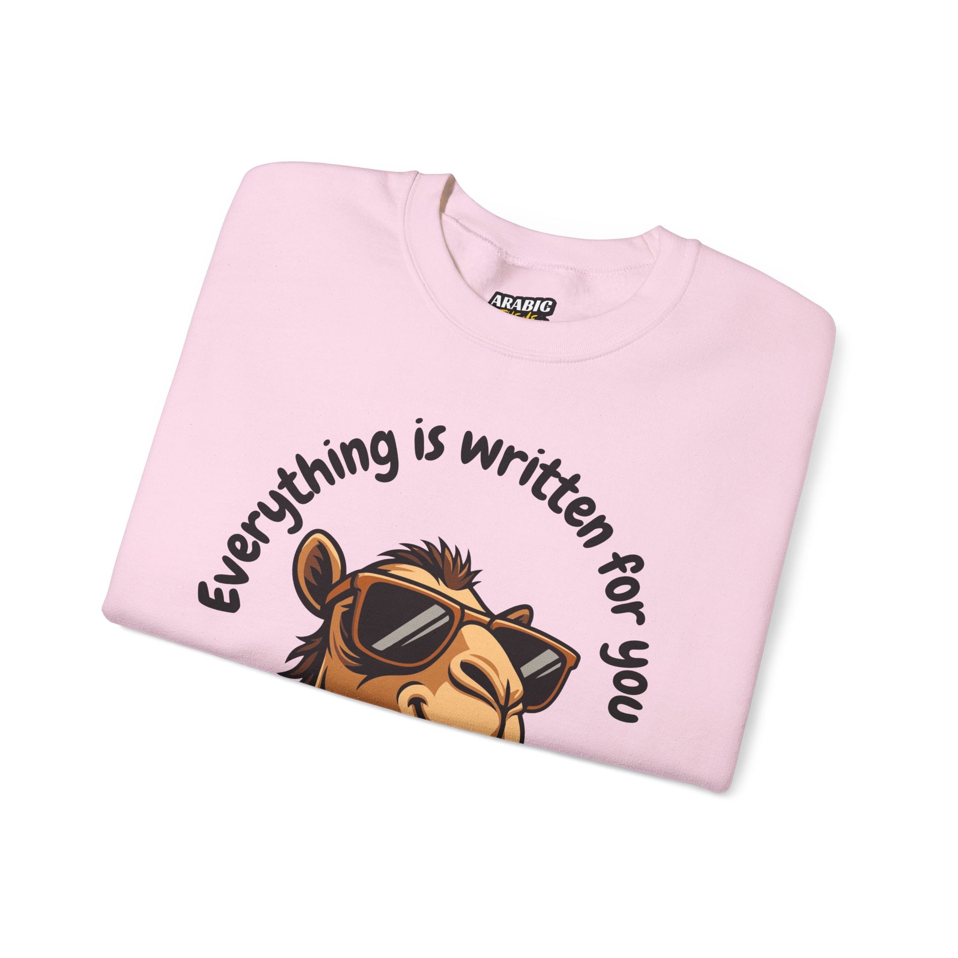 Spread positivity and faith with our Its written for you So chill Typographic Sweatshirt - Cool Camel Sunglasses Cozy Soft Cotton Unisex Sweatshirt! A cozy and stylish pullover designed to remind us of the Qadr. The phrase "If Allah has written it for you, it will always find its way" in Islam reflects the core belief in Qadr (divine destiny/predestination), meaning what's decreed for a believer will inevitably happen, even with delays or obstacles, emphasizing faith, patience (sabr), and trust (tawakkul) in Allah's perfect plan and timing, assuring believers that nothing truly meant for them can be lost, and what isn't, won't be, encouraging reliance on God over worldly worries.