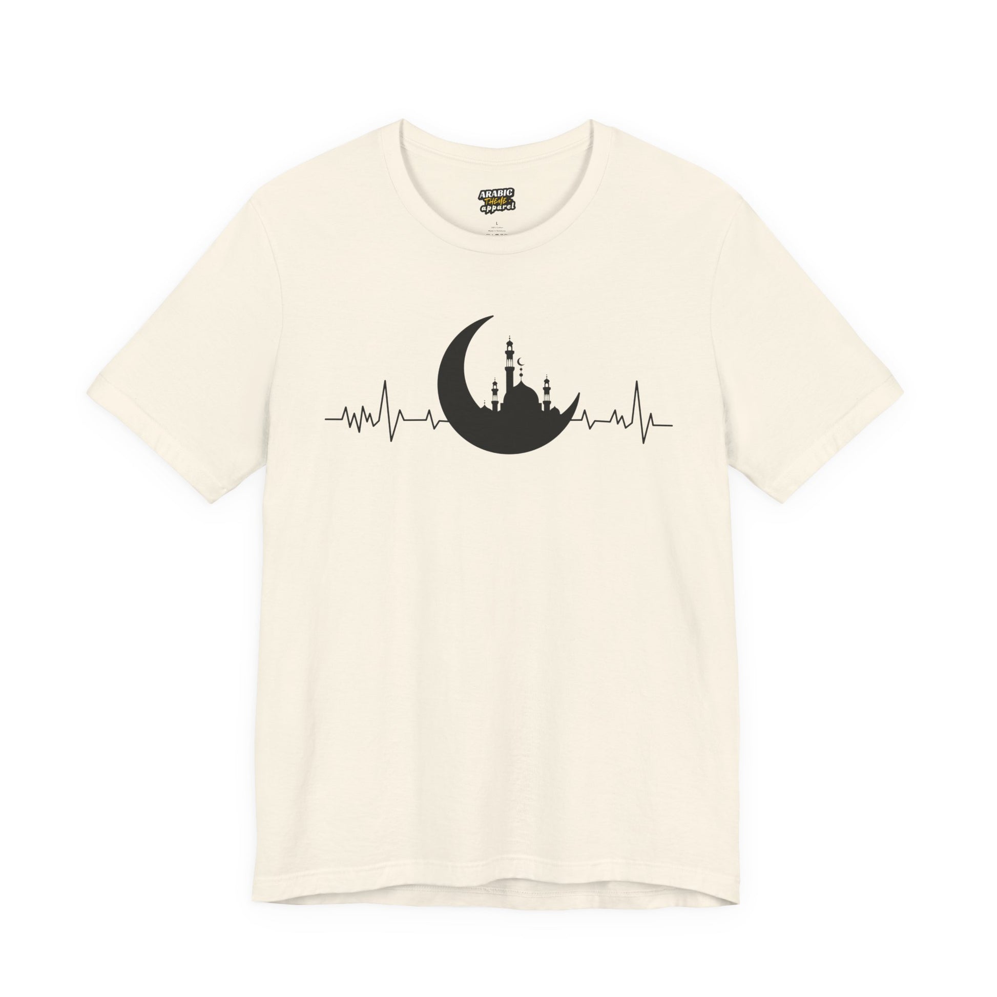 Moonlit Heartbeat Crescent Mosque Graphic Tee T-Shirt - Cozy Soft Cotton Graphic Unisex Tee