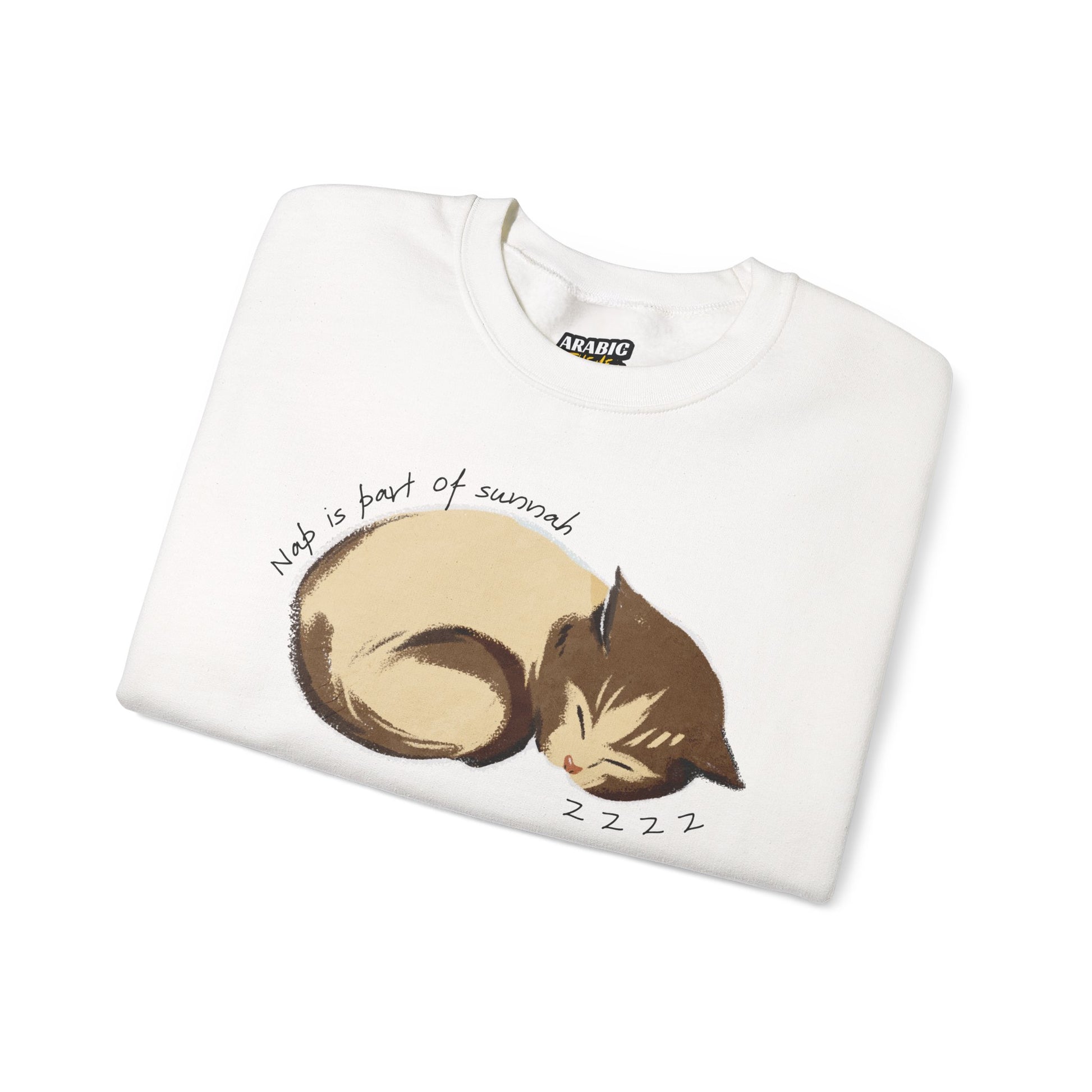 Nap Is Part Of Sunnah Typographic Sweatshirt - Cozy Soft Cotton Unisex Sleeping Cat Graphic Sweatshirt