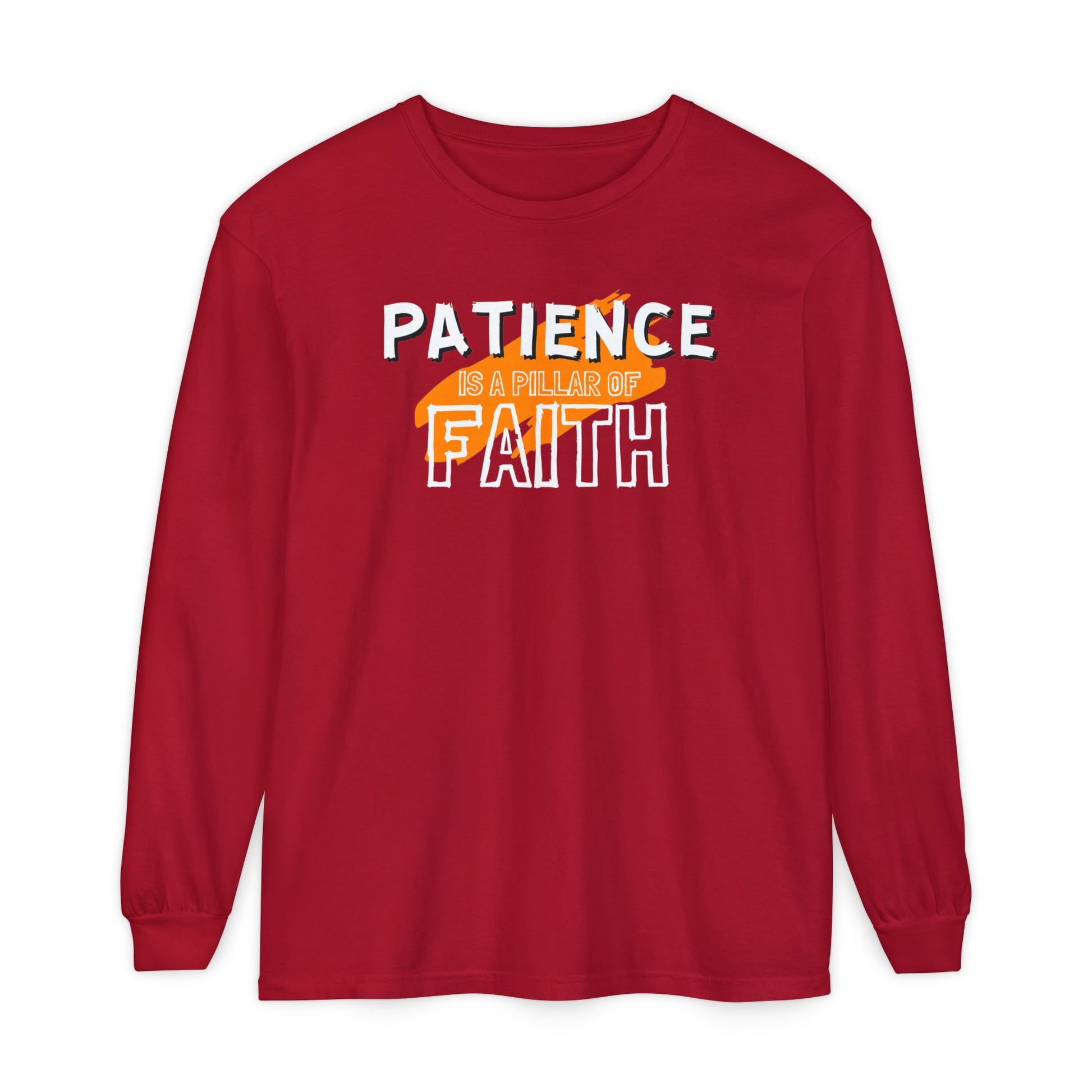 Patience is a Pillar of Faith Typographic Long Sleeve Tee T-Shirt - Cozy Soft Cotton Unisex Statement Long Sleeve Tee