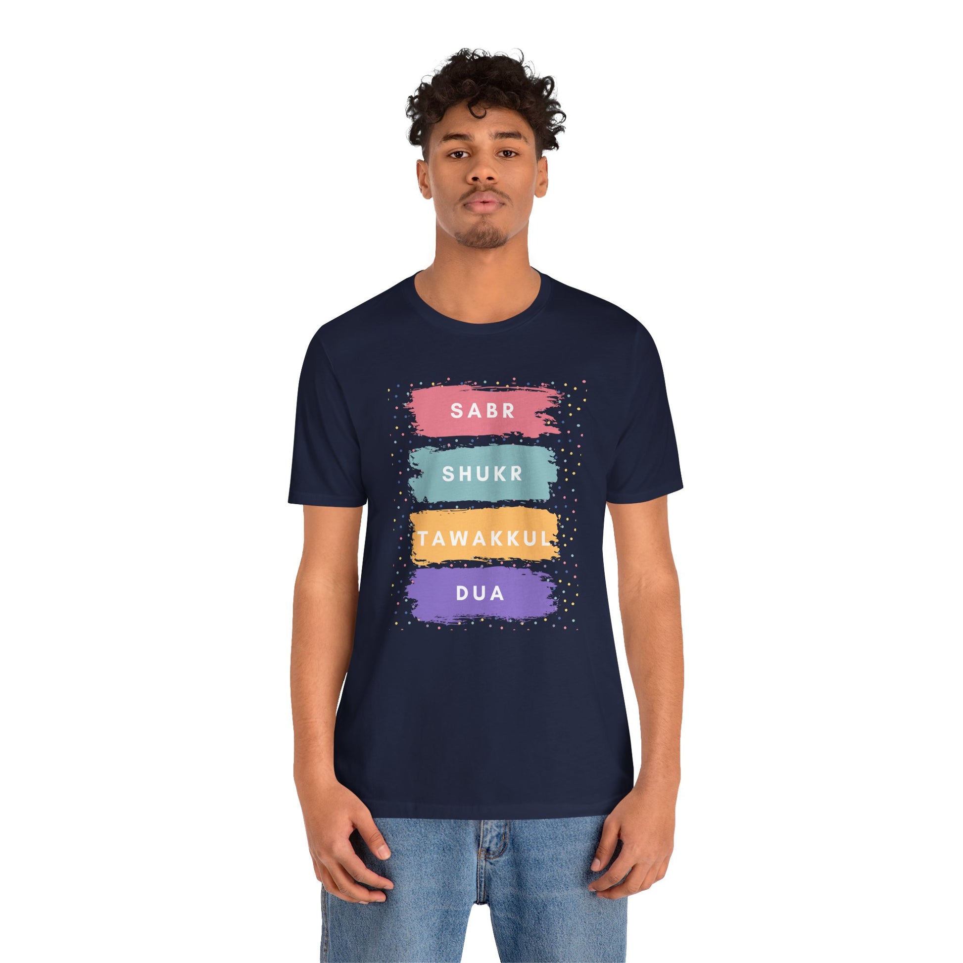 Sabr Shukr Tawakkul Dua Typographic Tee T-Shirt - Colorful Cozy Soft Cotton Unisex Tee