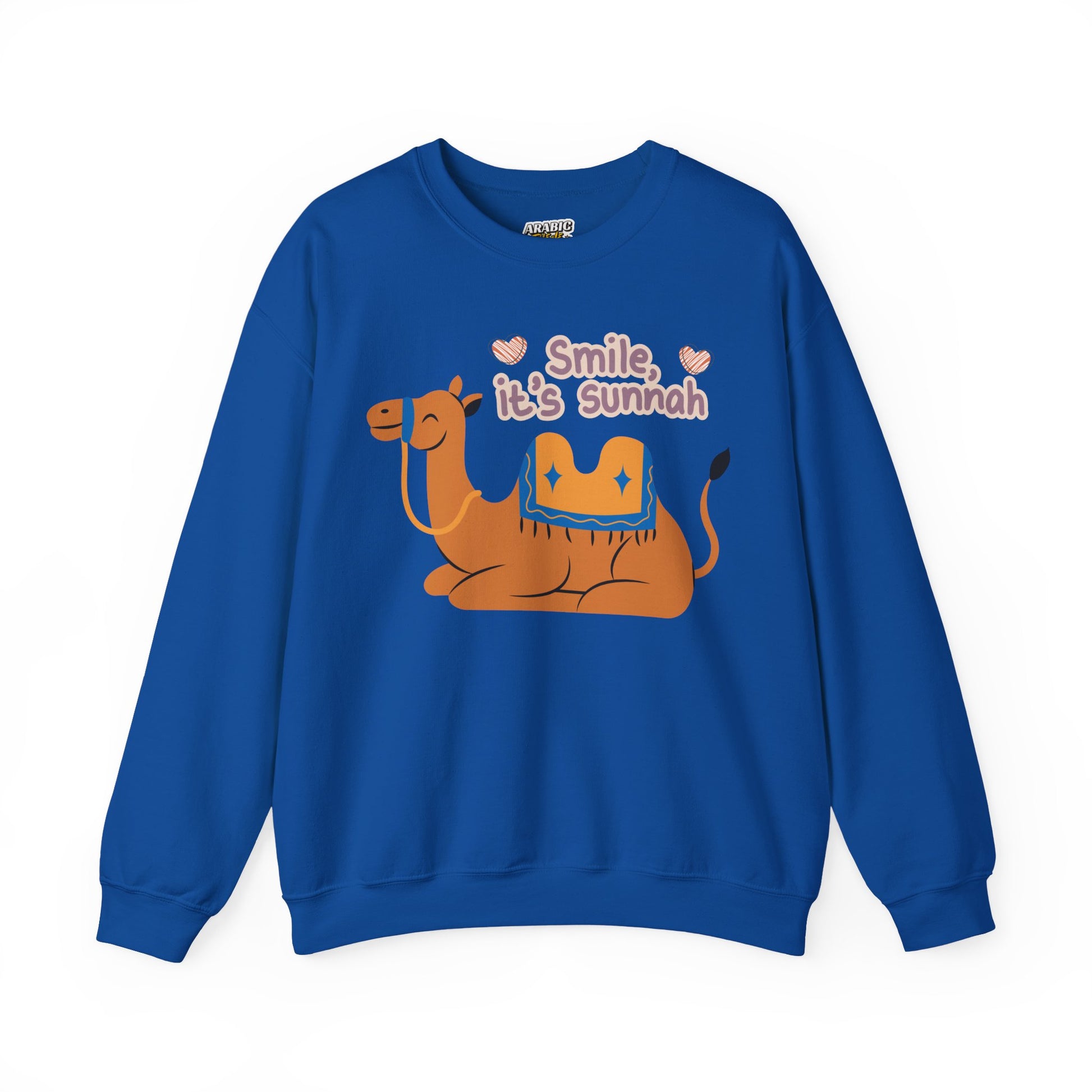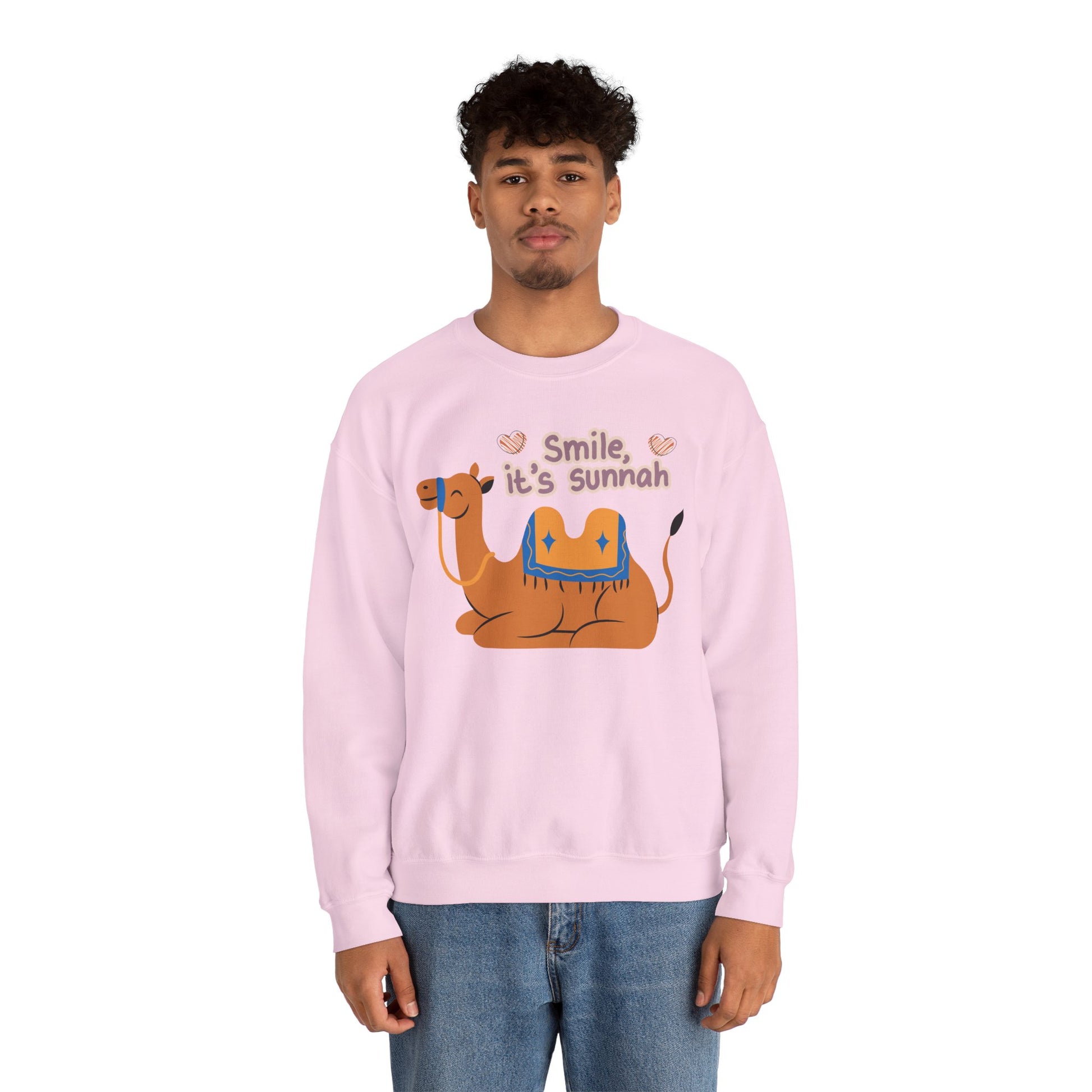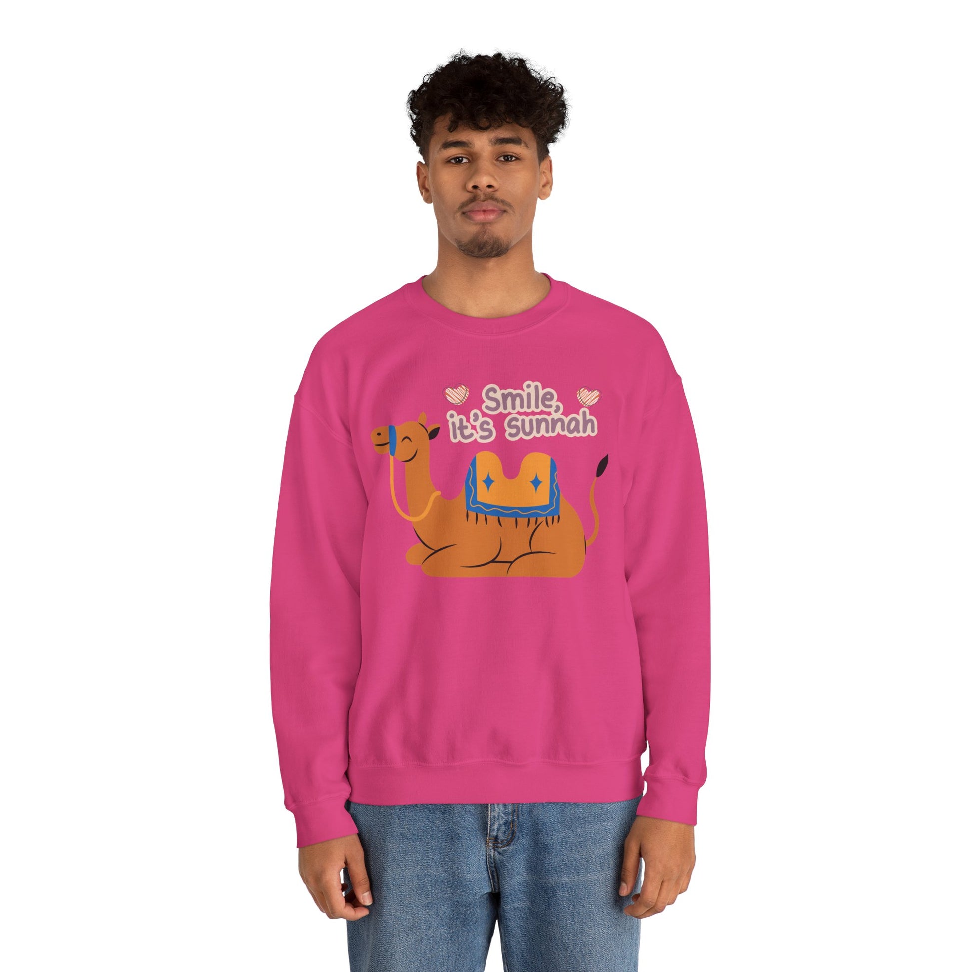 Smile Its Sunnah Typographic Sweatshirt - Cute Camel Smiling Cozy Soft Cotton Unisex Sweatshirt