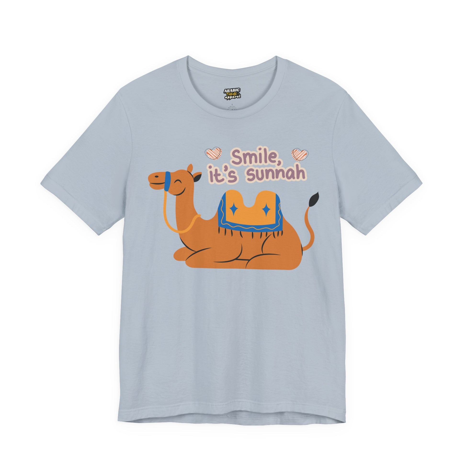 Smile Its Sunnah Typographic Tee T-Shirt - Cute Camel Smiling Cozy Soft Cotton Unisex Tee