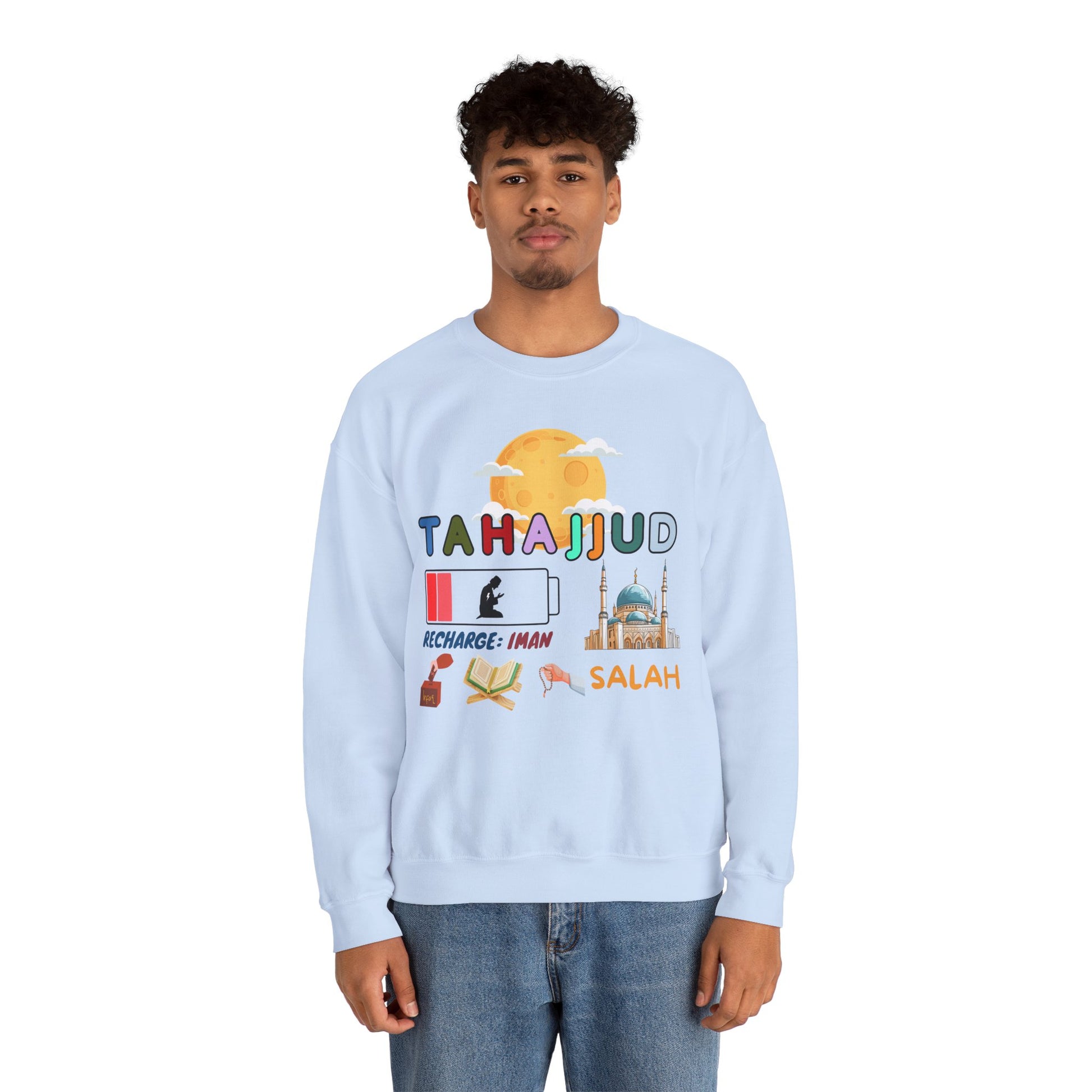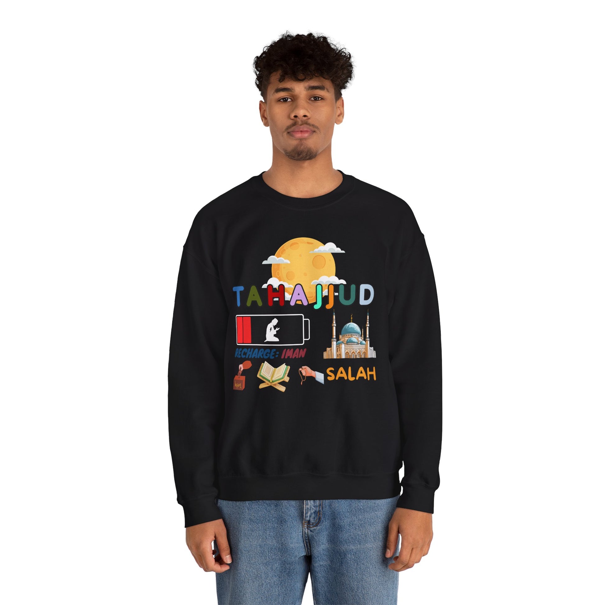 Tahajjud Recharge Iman Graphic Sweatshirt - Tahajjud Recharge Iman Typography Islamic Unisex Sweatshirt