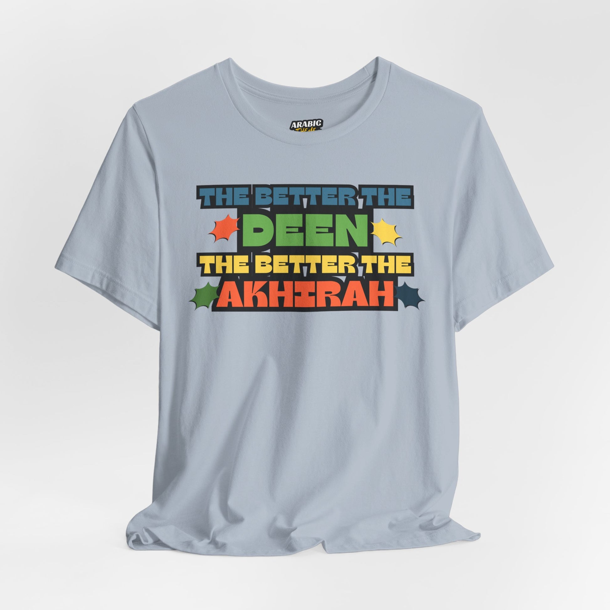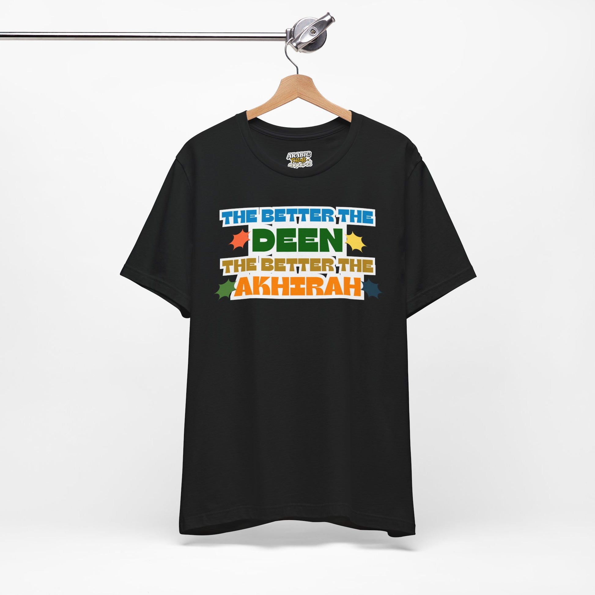 The Better Deen Akhirah Typographic Tee T-Shirt - Cozy Soft Cotton Unisex Statement Tee