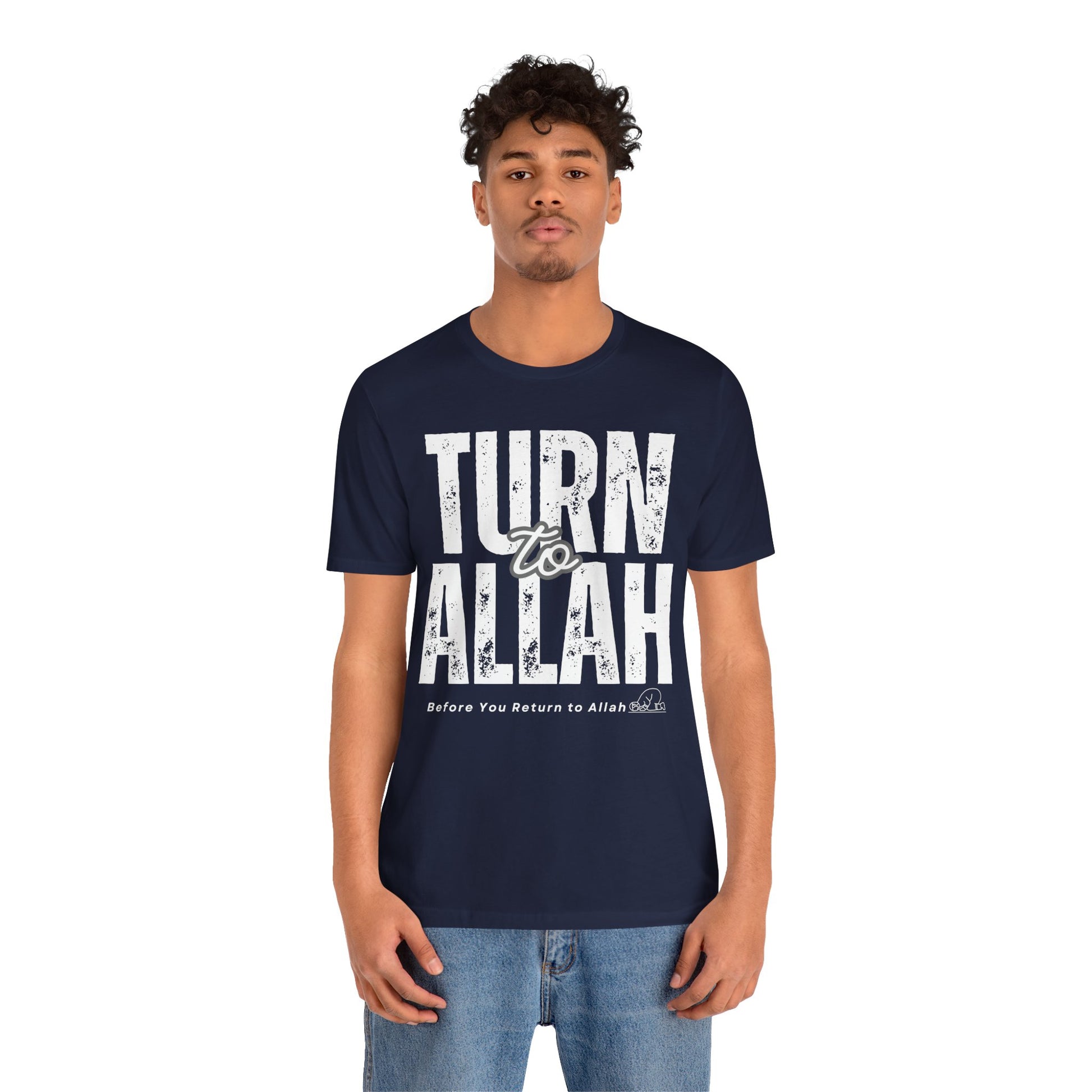 Turn To Allah Before Return To Allah Typographic Tee T-Shirt - Tawbah Cozy Soft Cotton Unisex Tee