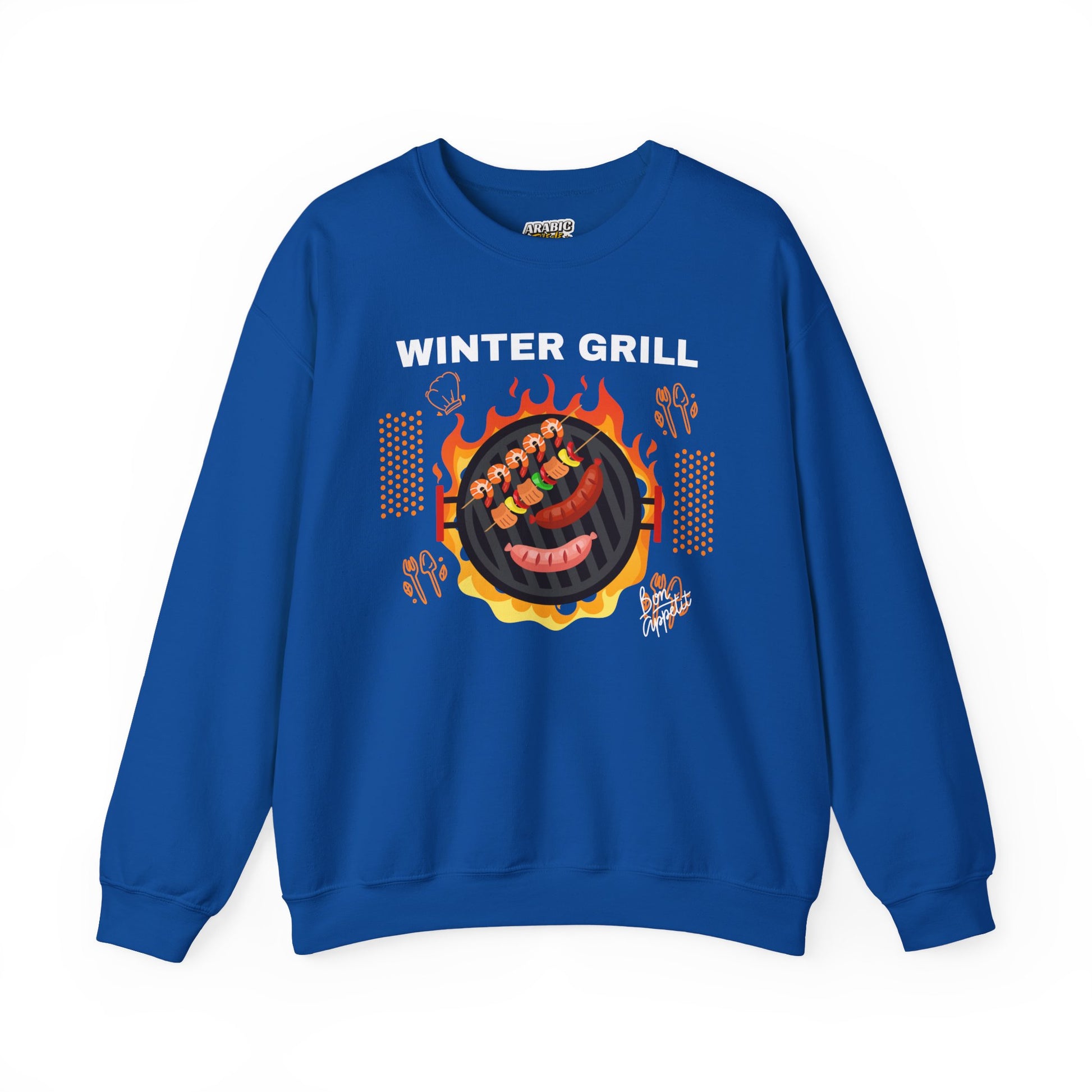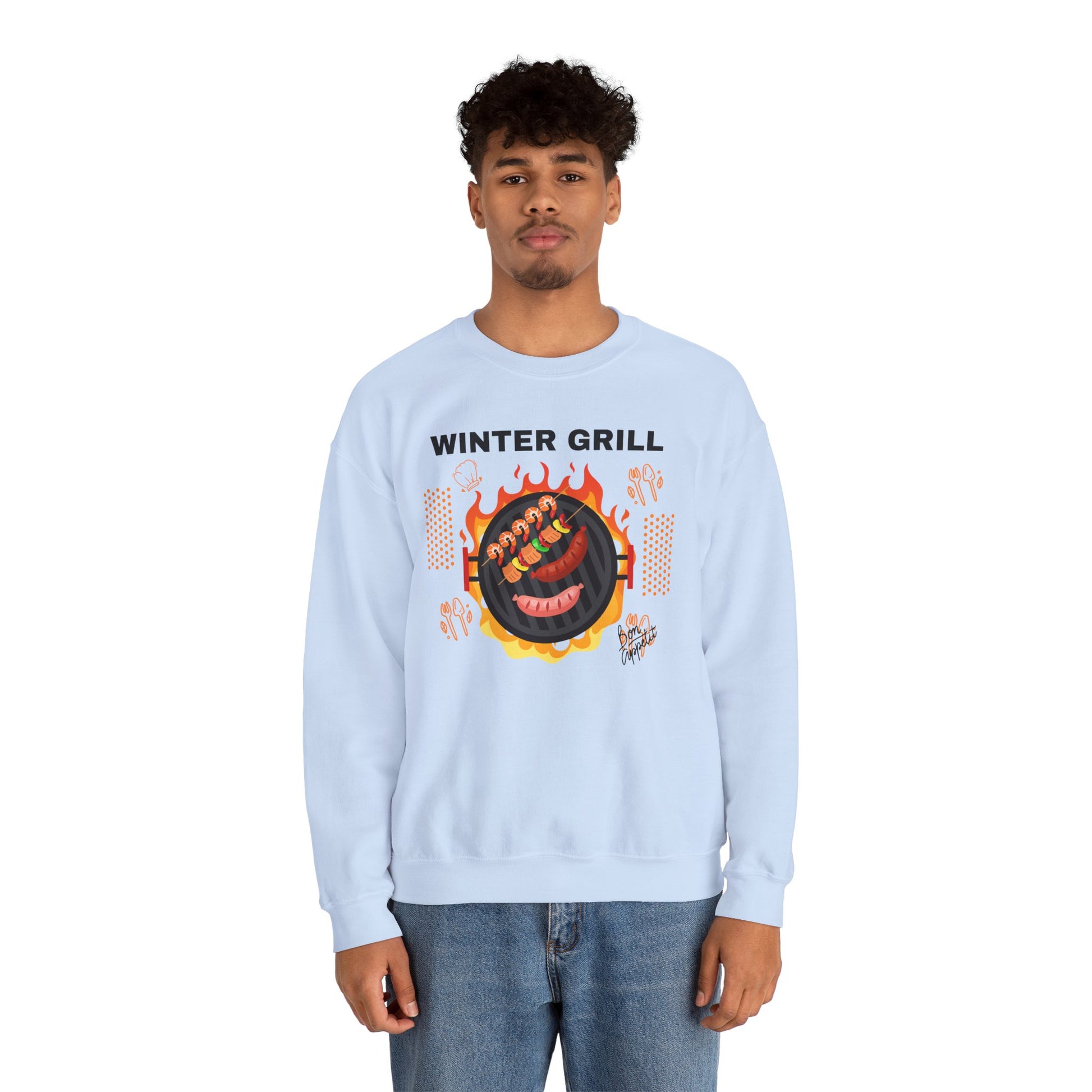 Winter Grill Typographic Sweatshirt - Cozy Soft Cotton Unisex Sausage Graphic Sweatshirt