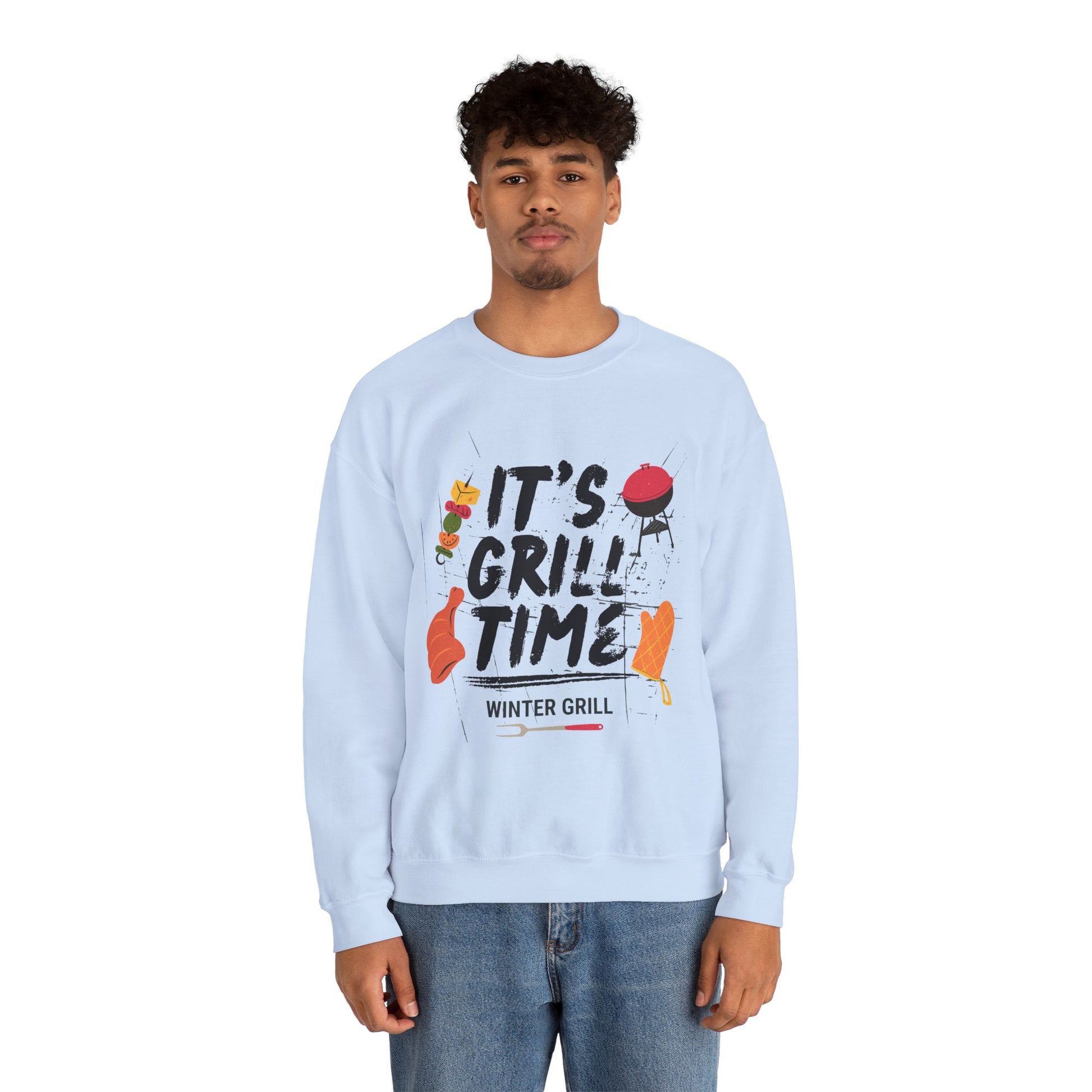 Winter Grill Typography Sweatshirt - Cozy Soft Cotton Unisex BBQ Graphic Sweatshirt